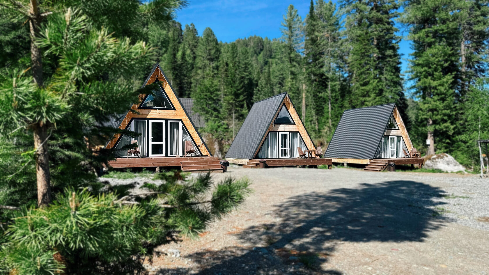 Благоустроенные дома в стиле А-frame с прекрасным видом на горы Алтая